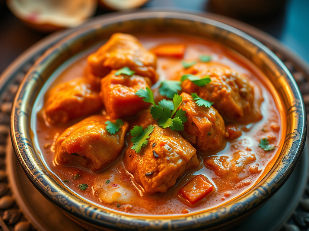Marinated baked breast of chicken cooked in rich tomato cream sauce.